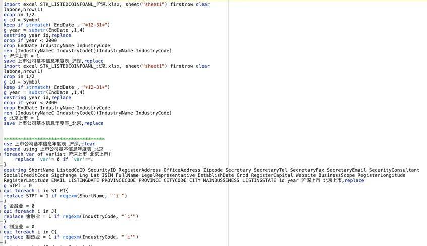 参考刘中华和黄斯琪等学者的做法,将当年企业总部所在省份被巡回法庭覆盖赋值为1,否则为0。数据提供两个版本excel版本和dta版本,还附了部分stata代码。