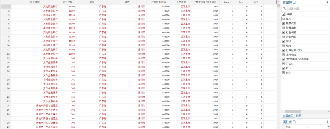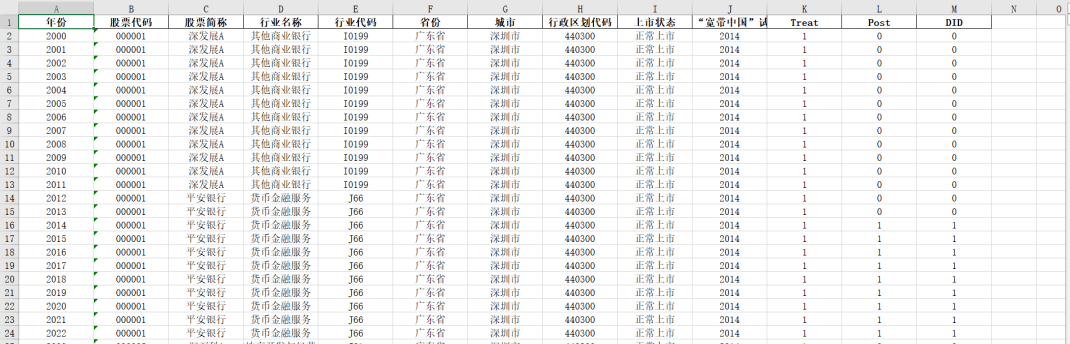 参照李万利(2022)、薛成(2020)等人的做法,根据企业所在城市入选“宽带中国”试点战略的批次构建DID。如果样本期间内企业所在城市被评选为“宽带中国” 试点城市,则该地区企业样本在入选当年及以后年份取1,否则为0