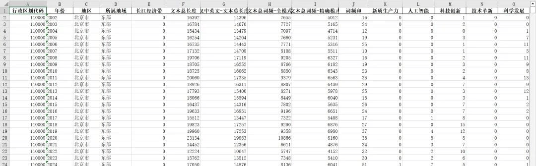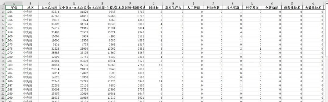 数据说明:内含新质生产力相关的46个词频明细、文本长度、文本词频总数