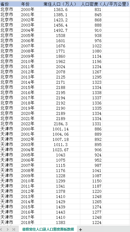 数据名称:各省常住人口及人口密度面板数据