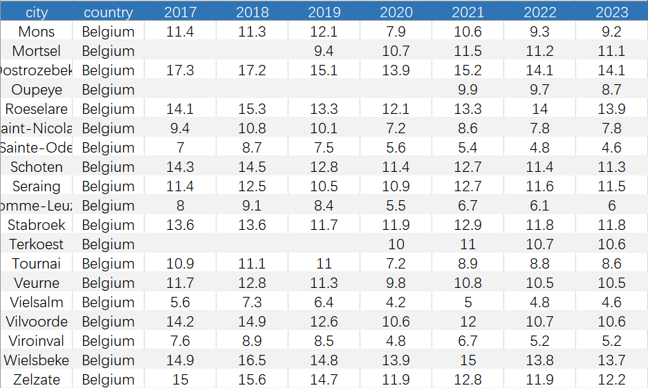 今天为大家分享一份全新整理的2017-2022年各国城市空气污染实证数据,供大家研究使用。
