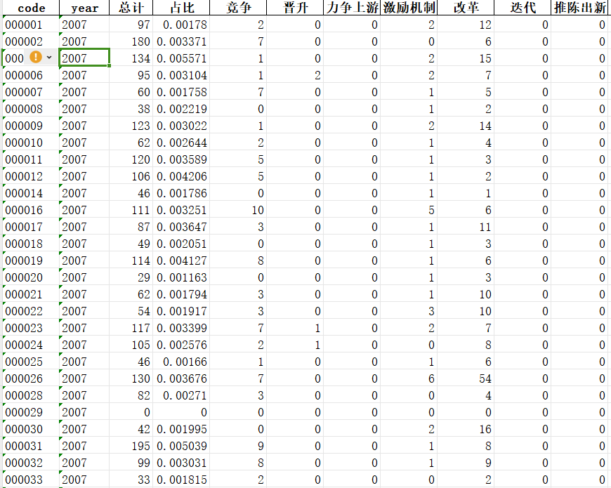 参考C刊《管理工程学报》谢陈昕(2022)老师的研究采用竞争、晋升、力争上游、激励机制、改革、迭代、推陈出新、更新换代、发展、开拓、抢占、目标、收购、挑战、压力、优势、市场份额、领先、占有率、积极性等关键词,使用上市公司年报对关键词使用文本分析法构建,得到词频统计数据。