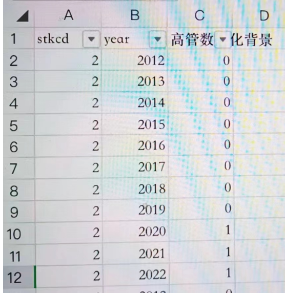 2、计算方式:参考C刊《经济管理》王超(2023)老师的研究,高管的数字化背景会影响企业的数字化决策。因此使用上市公司董监高个人特征数据中的高管所学专业信息构建高管数字化背景的虚拟变量,将所学专业中涉及“信息、智能、软件、电子、通信、系统、网络、自动、无线、计算机”的视为有数字化背景高管。若上市公司高管中任意一人具有数字化背景,则该指标为 1,否则为0。