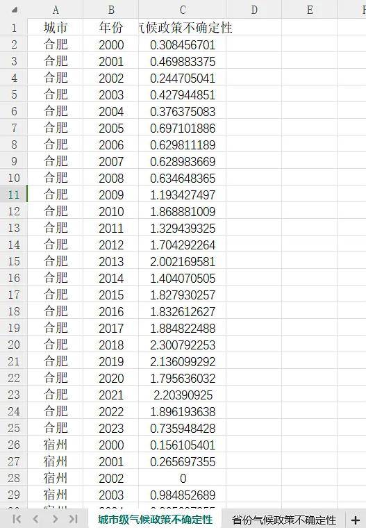 2.中国31个省份层面气候政策不确定性指数数据集(不包含港澳台数据),包含月度和年度指数。