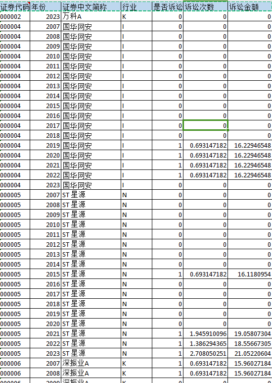 数据名称:上市公司-诉讼风险、诉讼次数等相关数据