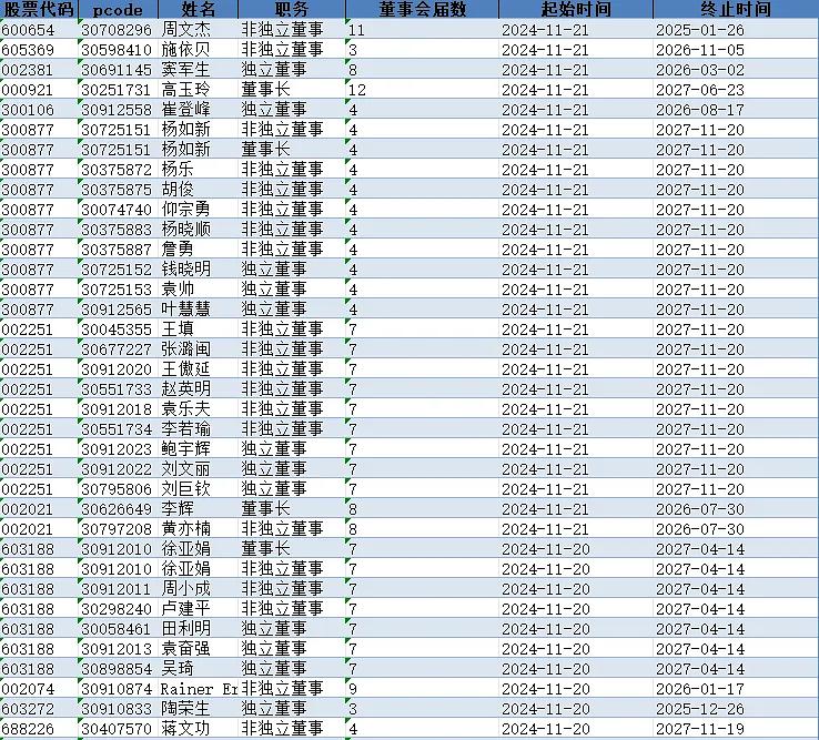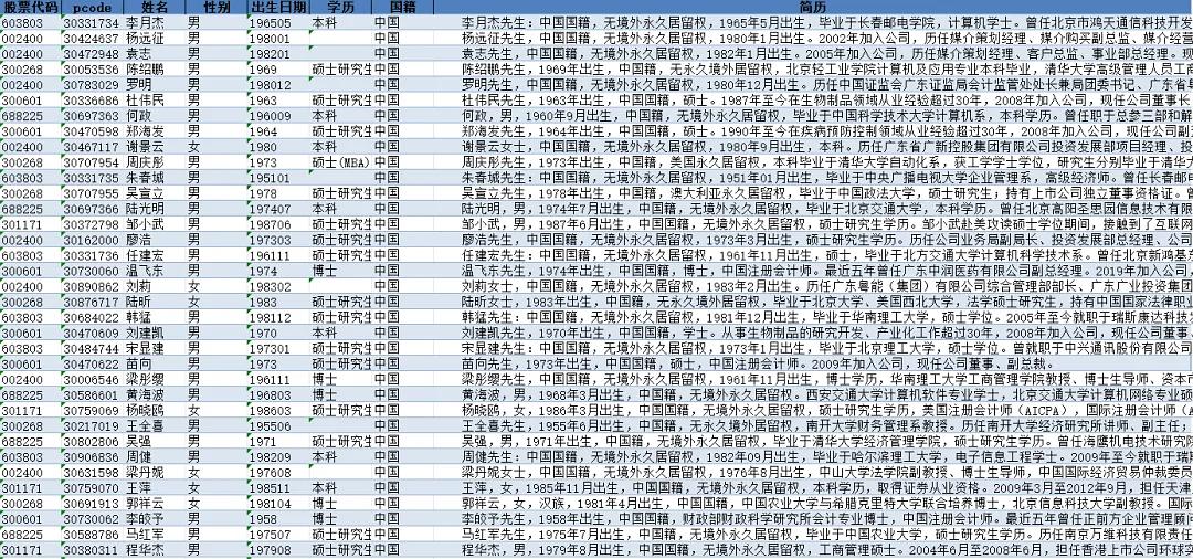 打造高效、专业、独立的董事会是推动公司治理顺利落实的关键环节,积极进取的董事会队伍能为企业审慎选聘最优管理者,监督高管勤勉尽责地履行职责,推动公司治理各项制度安排落地,提升公司价值和绩效表现。数据包含董事会成员表、高管信息表、持股情况表、任职详情表四份数据。