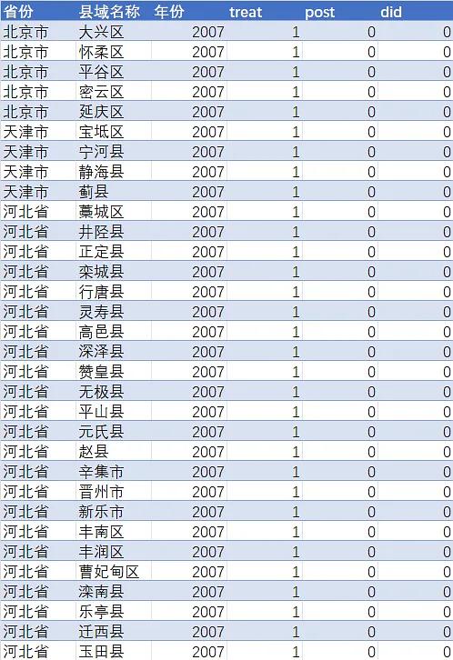 中国环境管理体制以及环境政策的制定与调整和中央政府的发展理念息息相关。我国中央政府于2016年开始推行省以下环保机构监测监察执法垂直管理制度改革,规定试点地区由省级环保部门直接管理其下属的市县级环保监测监察机构。该改革是一项调整环保管理体制的“底盘性”改革,调整了环保监管事权的分配,使得试点地区的环境监测监察职权的分配趋向于扁平化,尽管未能彻底取消市级环保机构,却缩短了监测监察职能的链条,改为由省级环保机构直接管理全省范围内的环境监测监察工作。本文参考李卫兵和杨咏文(2024)的做法,使用“环保机构扁平化政策”的政策虚拟变量(Treat×Post)表征,构建了多节点DID模型。若某县所在省份属于节点省份,则treat取值为1,否则为0;post为时间虚拟变量,在各省发布政策当年及之后的年份取1,否则为0。需要说明的是,若文件出台时间在6月份或之前则以文件出台当年为推行改革的起始年份,若文件出台时间在6月份以后则以文件出台的下一年为推行改革的起始年份。