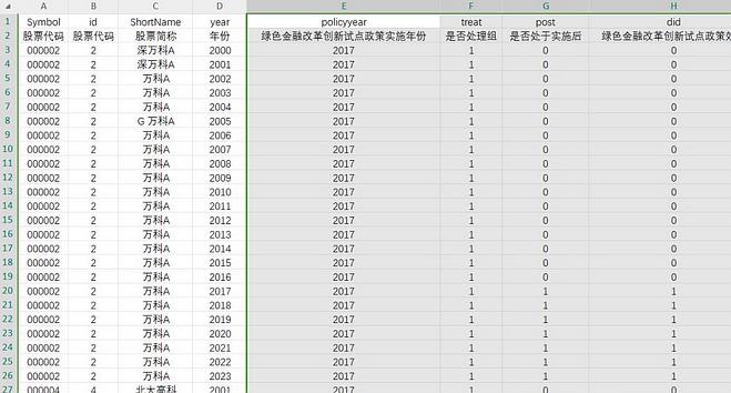 treat:如果企业位于绿色金融改革创新试验区内为1,否则为0