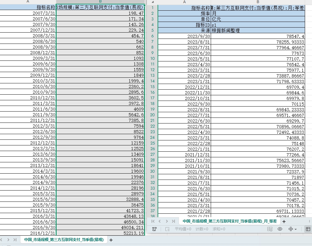 数据名称:第三方互联网支付季度、月度数据