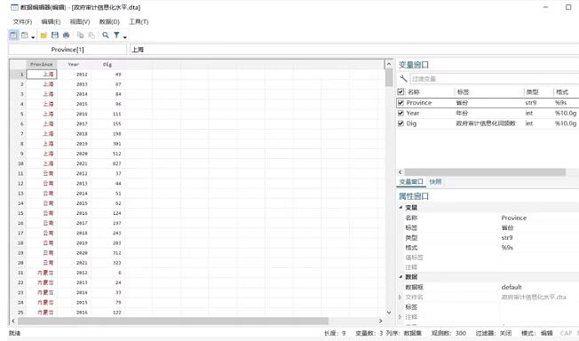 本数据复刻房巧玲等(2023)做法,使用文本分析法统计政府审计年鉴中信息化相关词语出现的词频,来衡量各省份的政府审计信息化水平。
