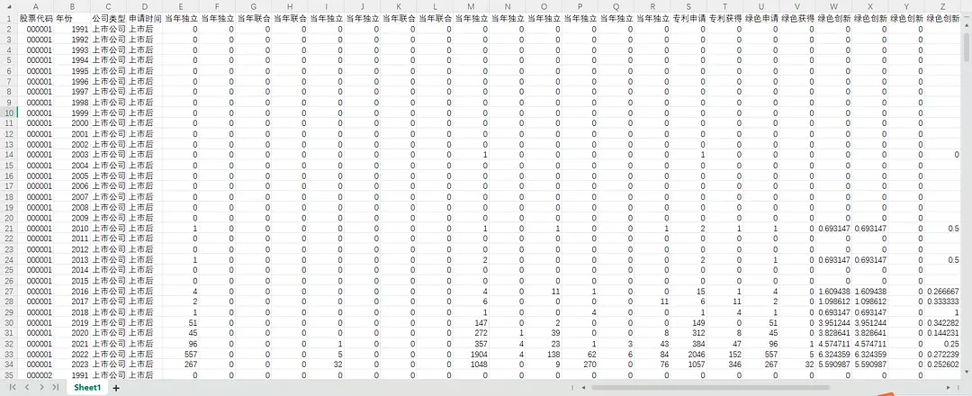 数据名称:上市公司绿色创新水平,绿色技术创新,绿色创新能力等