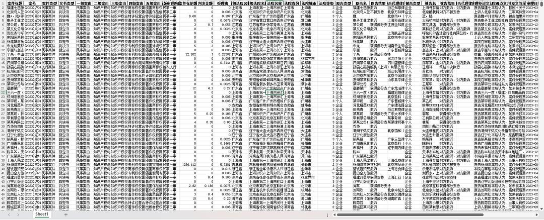 从裁判文书网收集整理了历年中国知识产权侵权的案件,包括知识产权合同纠纷、知识产权权属及侵权纠纷190余万件,包括案件金额、原告、被告、判决、引用法规等39个指标、数据年份为1986-2025.2