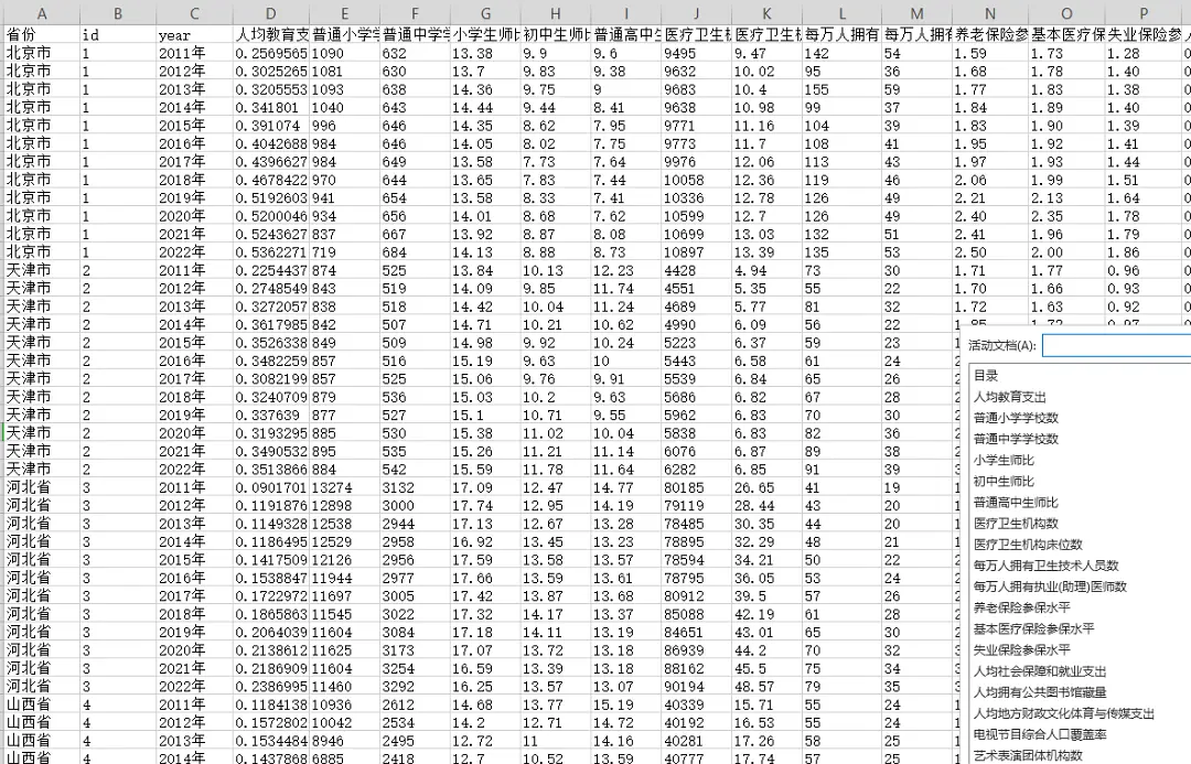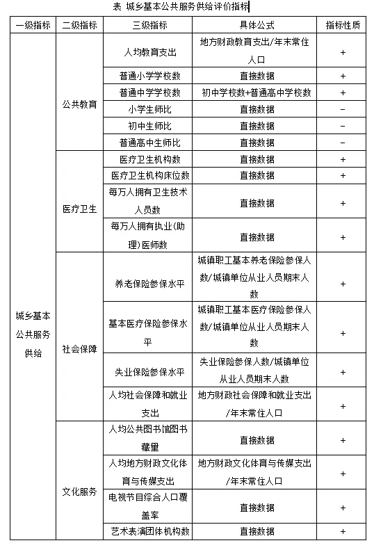 城乡基本公共服务供给评价指标体系构建:从公共教育、医疗卫生、社会保障、文化服务四大角度构建,具体如下: