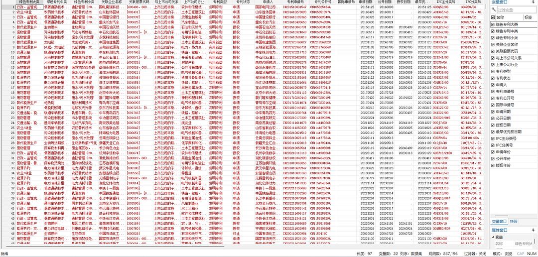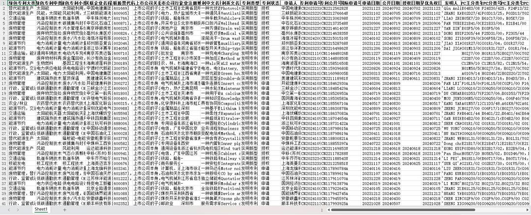 根据最新WIPO的绿色专利清单,筛选企业绿色专利,包括上市公司本身、子公司、联营、合营公司。数据更新至2025.2,整理绿色专利数据83.7万条,包括与上市公司关系、绿色类别等字段