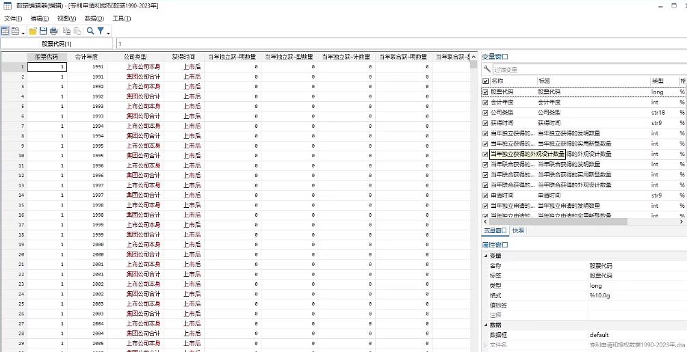 2007-2023年 上市公司-技术创新持续性数据 统计口径:A股上市公司 时间范围:2007-2023 数据来源:样本企业的专利申请信息取自国家知识产权局官网提供的知识产权综合信息服务平台,并结合佰腾专利检索系统进行数据核查,企业基本信息及绩效数据来自各上市公司的年报以及国泰安数据库。