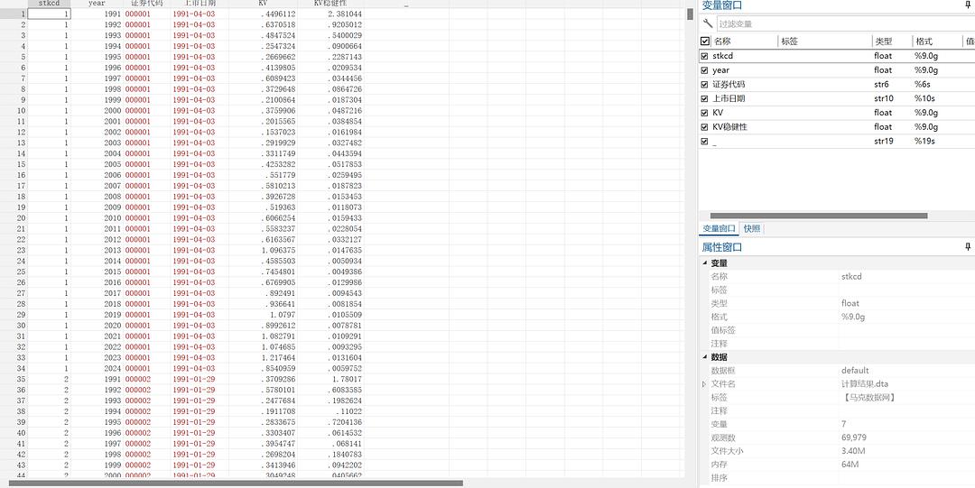 stkcd、year、证券代码、上市日期、KV、KV稳健性、行业代码