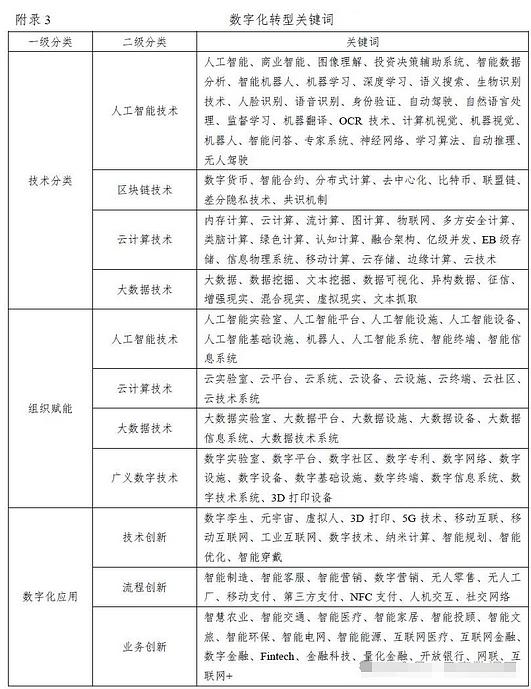 数字化转型B:参考《财贸经济》中赵宸宇(2021)的做法,对数字技术应用、互联网商业模式、智能制造、现代信息系统四个维度99个数字化相关词频进行统计