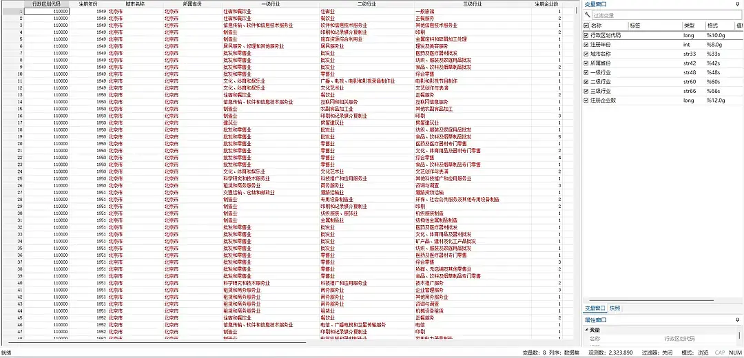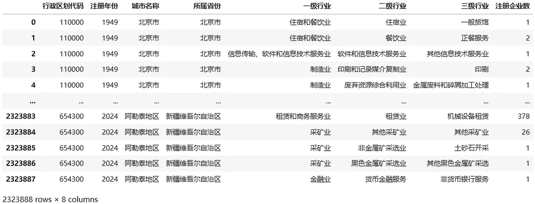 工商企业是指依法注册并从事生产、经营活动的各类经济主体,它们在市场经济中发挥着重要作用。团队整理了3.4亿+中国工商企业注册数据,涵盖了400多个行业小类。并对企业的注册地址进行解析,整理统计了1949至今的各城市各行业的新注册企业数据