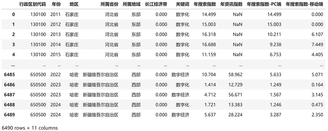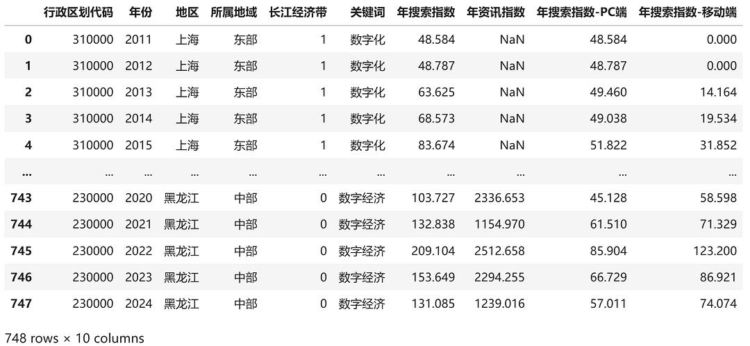 团队参考《中南财经政法大学学报》中黎新伍(2022)的做法,整理了31个省、295个地级市的"数字经济"和"数字化"的百度指数、资讯指数,以衡量各地区的数字经济关注度