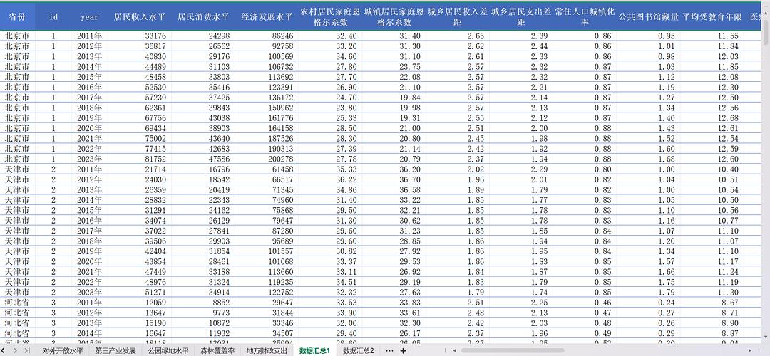 1、31各省共同富裕数据文件概览