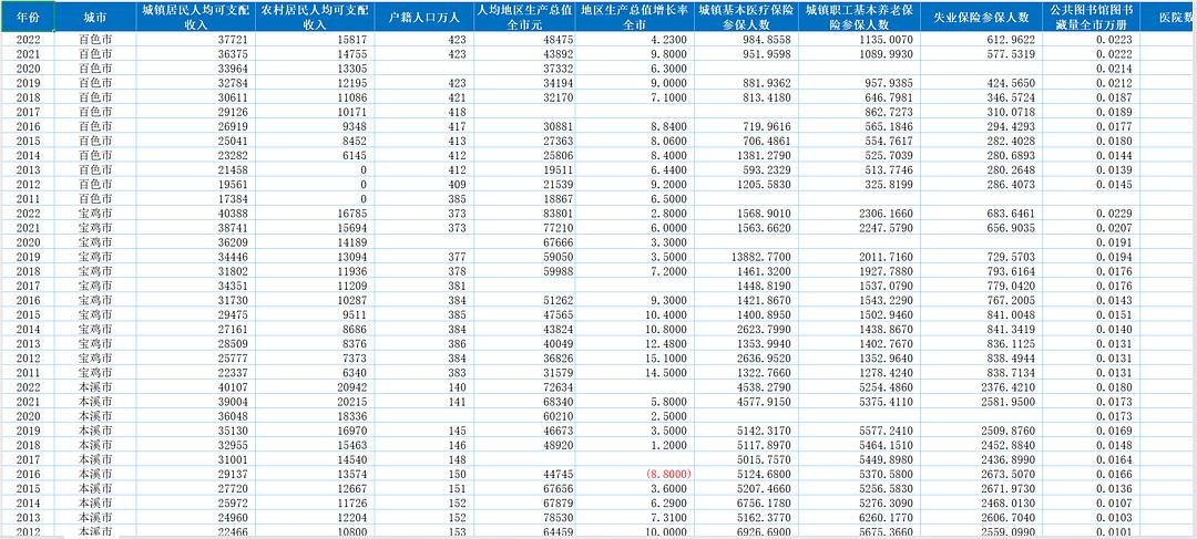 本数据借鉴张涛和李均超(2023)的研究方法,围绕包容性绿色增长的核心内涵,从经济增长、收入分配、福利普惠和环境保护四个维度,构建了地级市层面的综合评价指标体系。采用主客观相结合的赋权方法,测算出中国地级市2011-2023年的城市包容性绿色增长指数。数据内容包括2011-2022年的原始观测值,以及利用ipolate插值法和epolate外推法补全缺失值后的2011-2023年插值数据