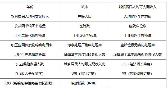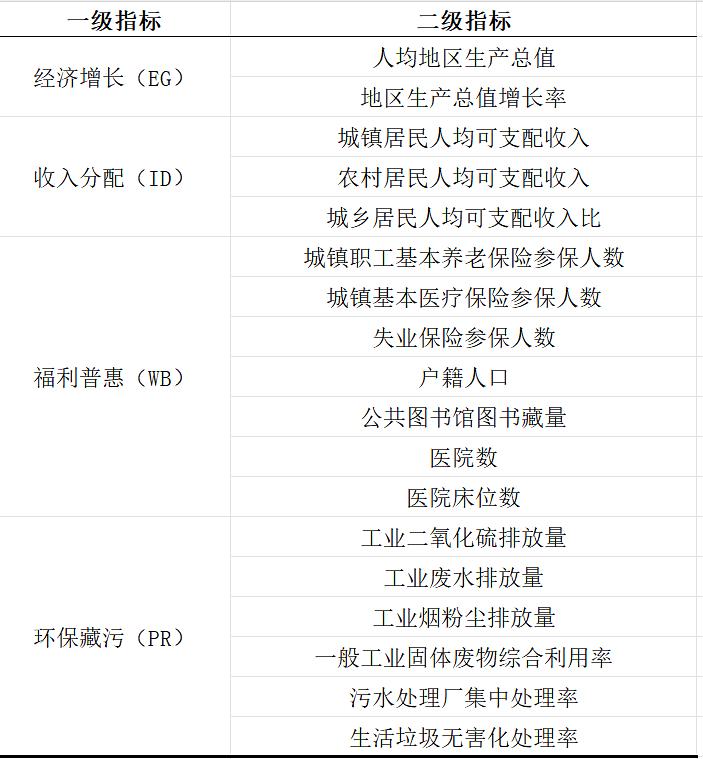 张涛和李均超(2023)的方法,依据包容性绿色增长的核心内涵,围绕经济增长、收入分配、福利普惠和污染减排四大维度构建指标体系,具体指标如下图