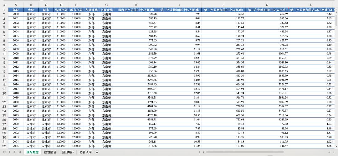 更多说明:包括原始、线性插值、回归填补3个版本
