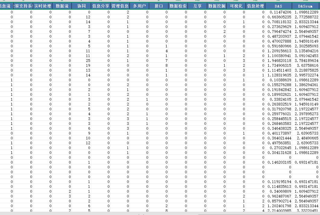 id 年度 总关键词数 信息共享 数据交换 互联互通 信息交换 资源共享 信息资源 协同工作 互操作 实时数据 数据资源 共享平台 互通 交互 鉴权 信息流 决策支持系统 实时处理 数据流 协同 信息分享 管理信息 多用户 接口 数据检索 互享 数据挖掘 可视化 信息处理 DAS DASsum