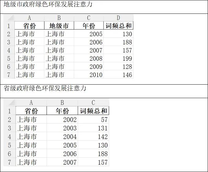注:在地级市政府绿色环保发展注意力中,指标为省份-地级市-年份-词频总和;(含所有关键词词频)