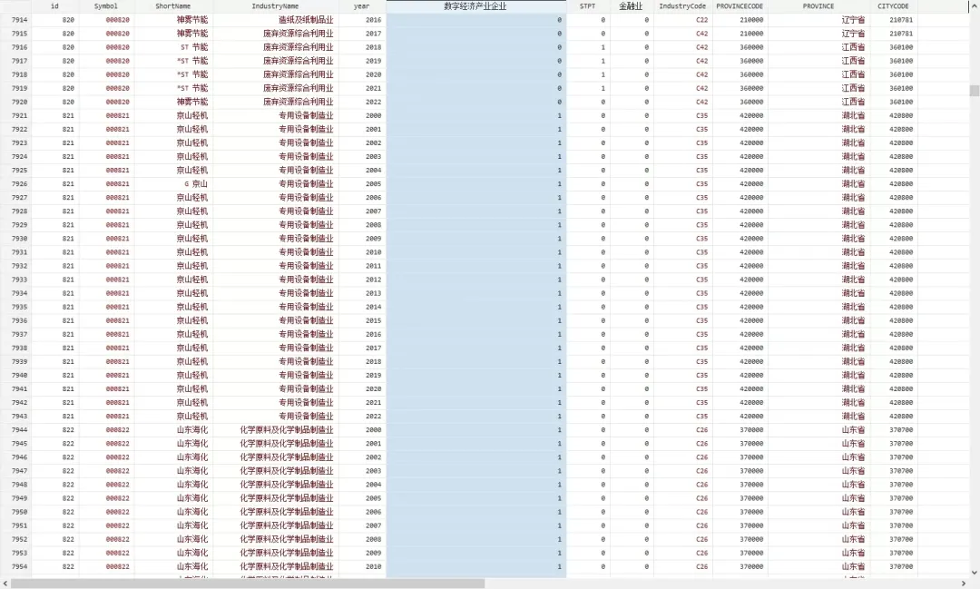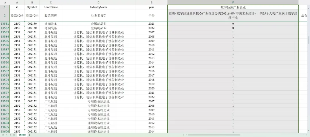 按照《数字经济及其核心产业统计分类(2021)》和《中国工业经济》,共25个大类产业属于数字经济产业。数字经济产业企业:1是,0否。