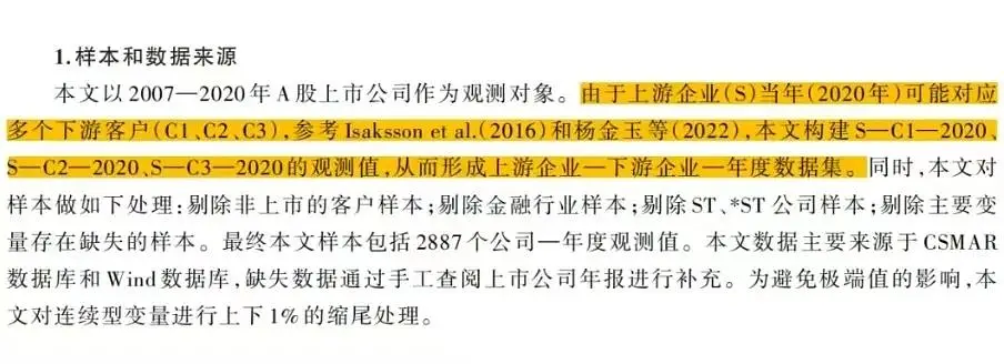 团队参考《中国工业经济》中陶锋等(2023)的做法,对上市公司的上下游供应商和客户数据进行匹配,形成“上游供应商—目标企业—下游客户一年度数据集”,为企业供应链相关研究提供重要的数据支持