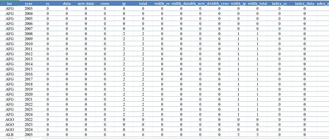 本数据参考崔日明等(2024)、梁俊伟等(2024)、张志明等(2024)的研究方法对全球数字规则一体化程度进行测算,数据年份涵盖2000-2024年,包含双边、单边及虚拟变量多种类型数据