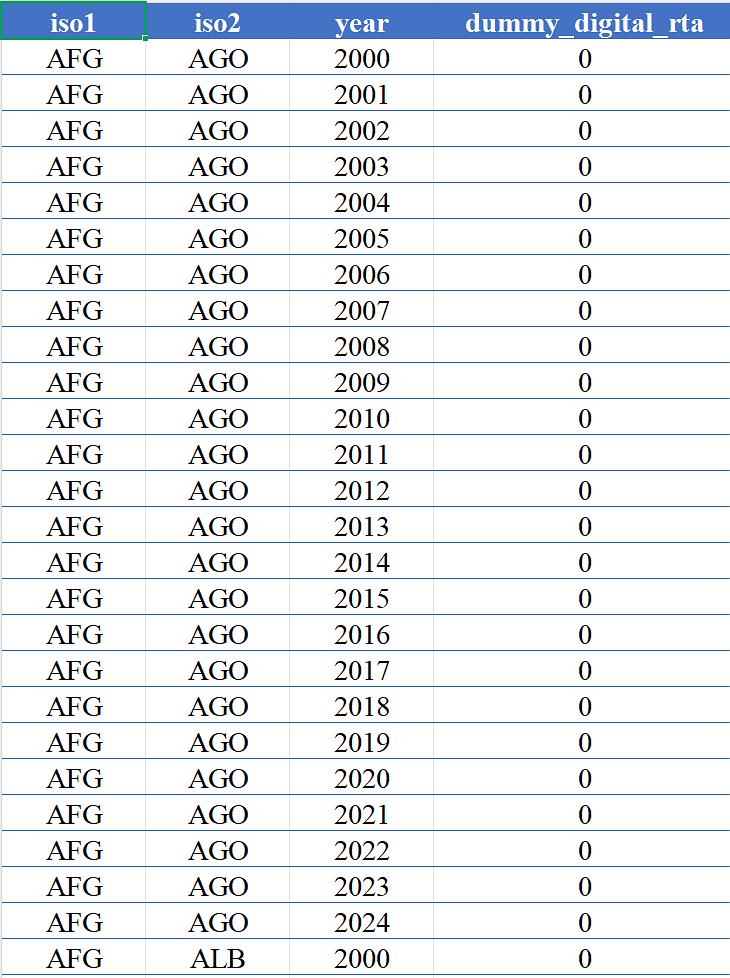 2、全球数字贸易规则一体化程度数据-虚拟变量