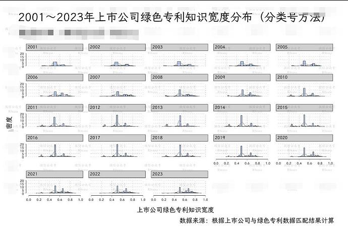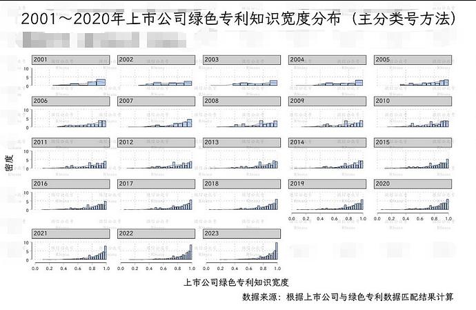 需要注意的是,由于两种方法利用的信息是不同的(主分类号方法仅仅利用了专利的主分类号指标,而分类号方法则利用了专利的分类号指标,信息更多),所以结果并不具备可比性。实际使用中可以选用一种方法得到的结果做模型,另外一种方法的结果做稳健性检验。
