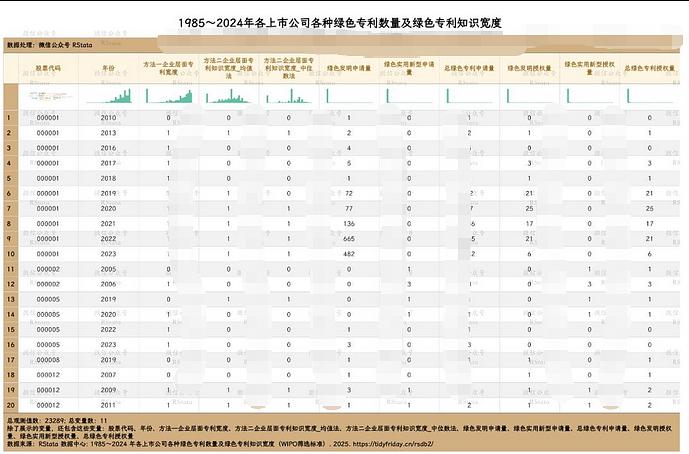 今天给大家分享就是 1985~2024 年各上市公司各种绿色专利数量及绿色专利知识宽度(WIPO筛选标准)。