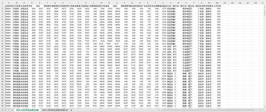 该数据库以新时代中国企业家精神的五个方面为一级指标,构建中国上市公司企业家精神评估指标体系,并量化评估我国沪深股市12个行业近3500家企业2010—2023年共14年间的企业家精神