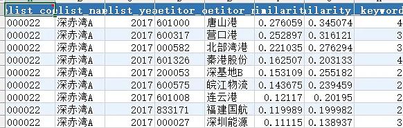 识别退市公司的产品市场竞争对手主要采用基于文本相似度的分析方法:首先从上市公司年报中提取"报告期内从事的主要业务和产品"文本内容,然后使用pkuseg中文分词工具结合专业词典对业务描述进行精确分词,过滤掉"生产"、"销售"等通用停用词,提取出行业专业关键词;接着计算退市公司与同年其他上市公司的共同关键词数量,按共同关键词数量降序排序,只对存在共同关键词的企业计算TF-IDF余弦相似度,并根据共同关键词数量对相似度进行动态权重调整(共同关键词越少权重越低),最终选择相似度最高的前10家企业作为该退市公司的产品市场竞争对手,从而避免因通用词汇导致的误判,确保识别出真正具有业务竞争关系的企业。最后再构建DID数据,即当公司i是强制退市公司的产品市场竞争对手,且t年处于强制退市发生当年及以后年度时取值为1,其他情况取值为0。