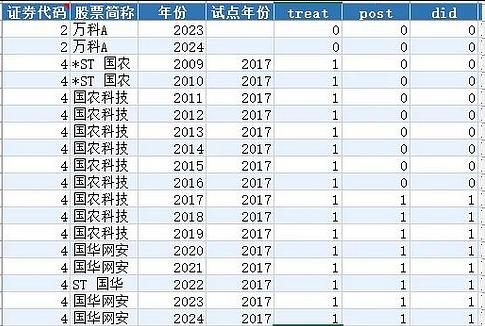证券代码、股票简称、年份、试点年份、treat、post、did
