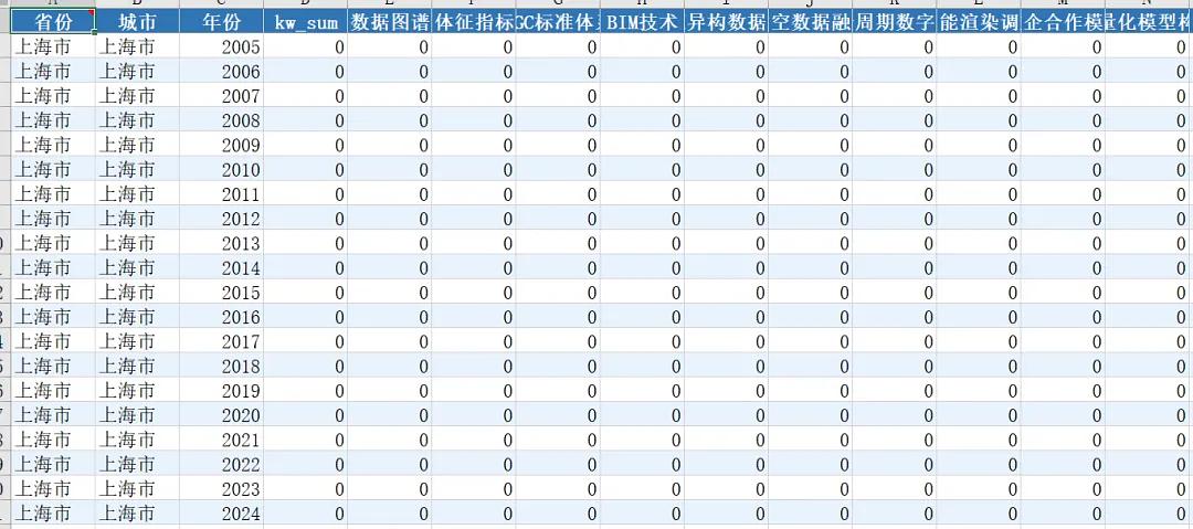 该指标的构建过程如下:数据来源于各地级市市政府官网发布的工作报告公开文本资料。在数据处理方面,运用文本分析方法,对文本进行分词、去停用词等处理,统计其中与数字孪生、城市建模相关词汇的出现频率,最终获得 2005-2025 年地级市数字孪生与城市建模文本分析的词频数据。