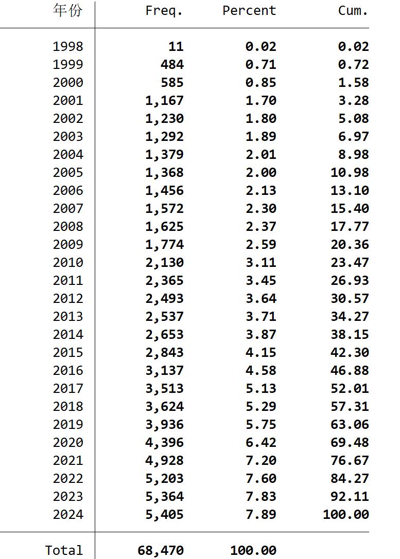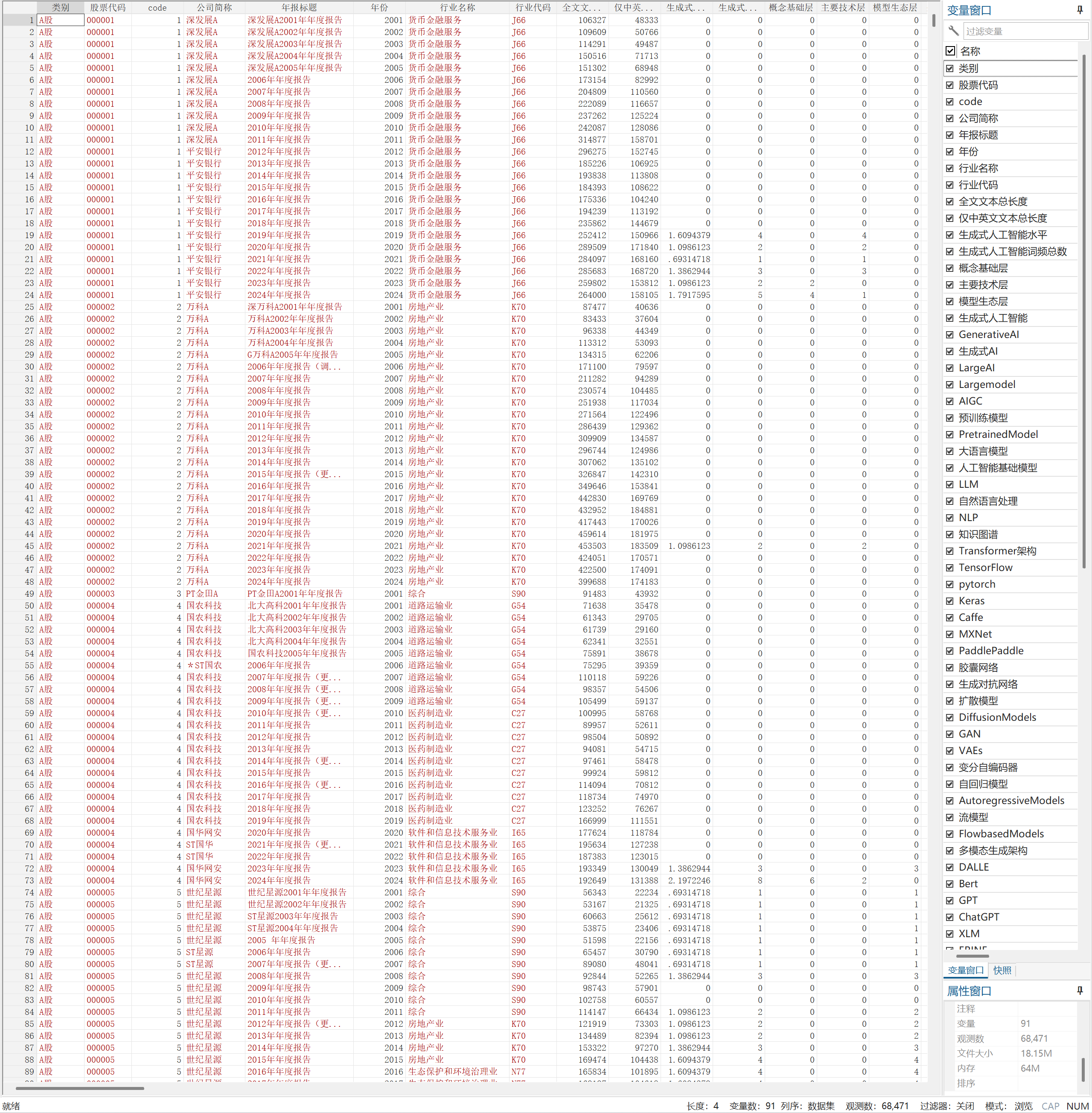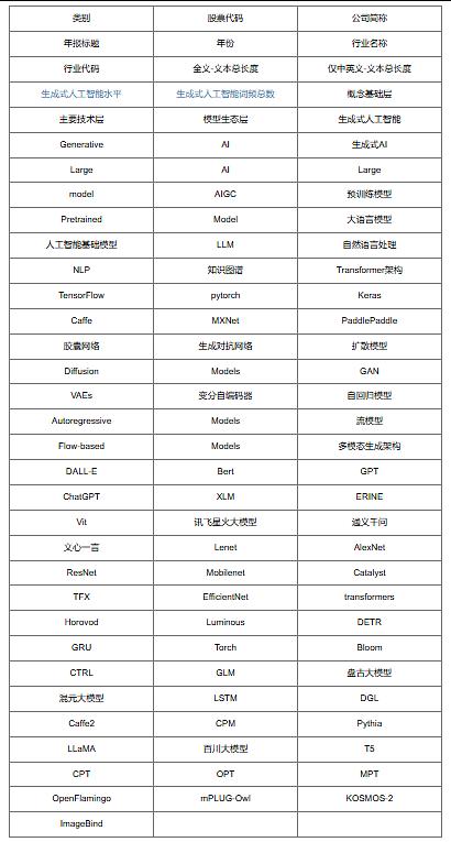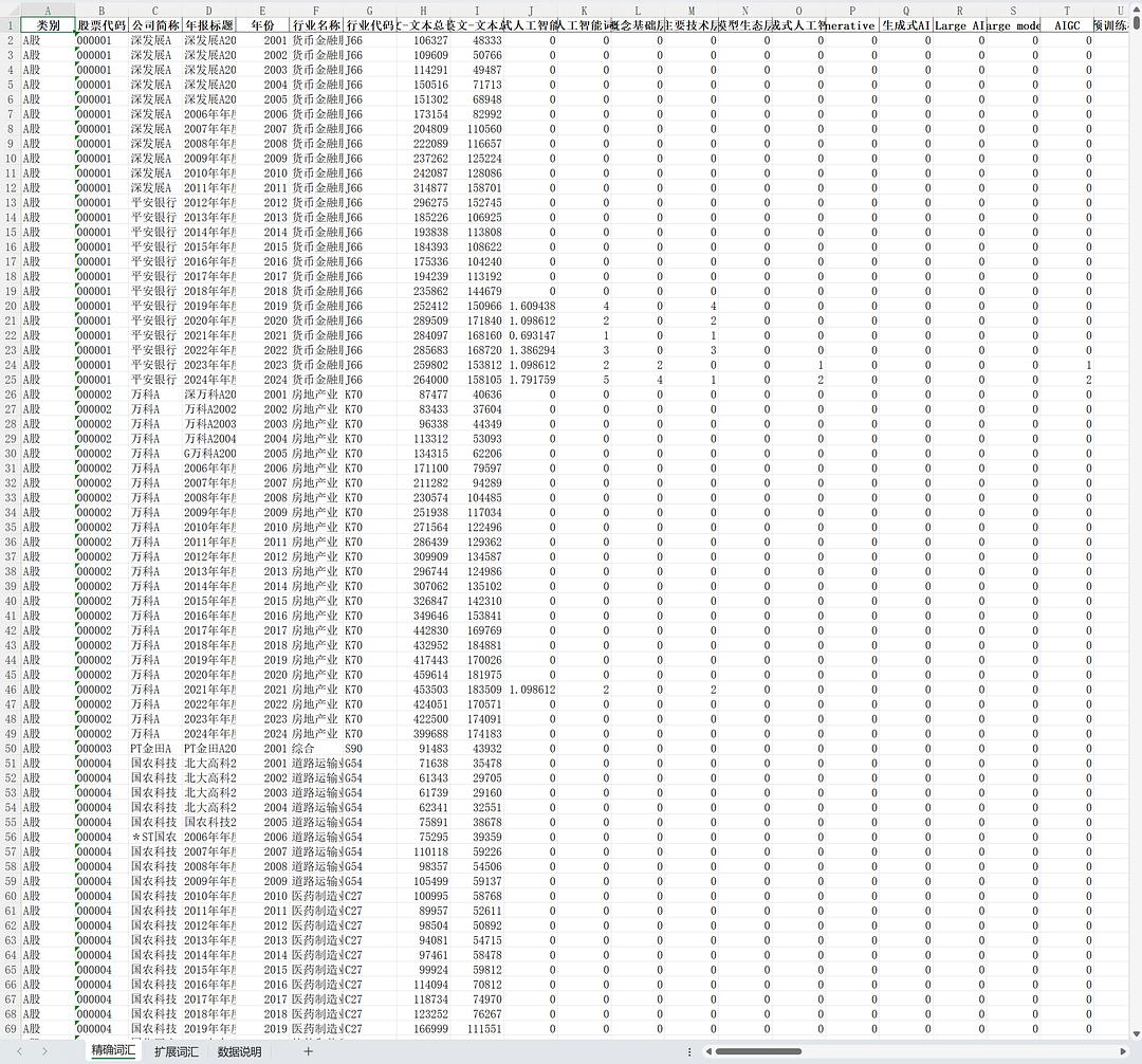 借鉴乔朋华等(2025)《生成式人工智能如何提升制造业企业韧性?》一文中对生成式人工智能文本词频的做法,采用生成式人工智能关键词在企业年报信息中出现的次数作为企业生成式人工智能水平的代理指标。整理步骤如下:
