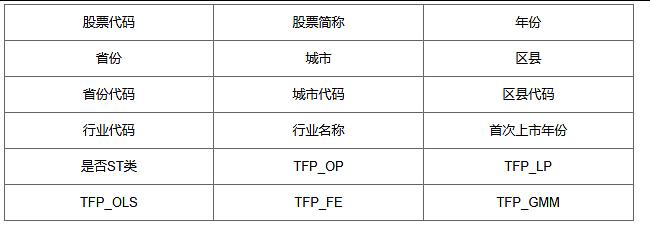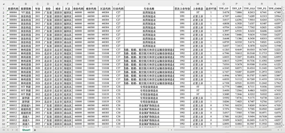 更多说明:包含TFP_OP、TFP_LP、TFP_OLS、TFP_FE、TFP_GMM五种常用估算方法结果