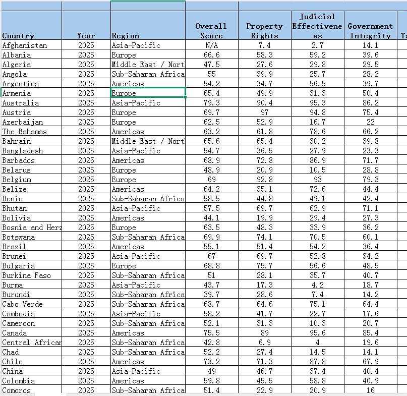 经济自由度越高,市场机制越完善,资源配置效率越高,长期经济增长潜力越大。该指数不仅为投资者提供决策参考,也为政策制定者优化经济政策、学者研究经济规律提供数据支撑。