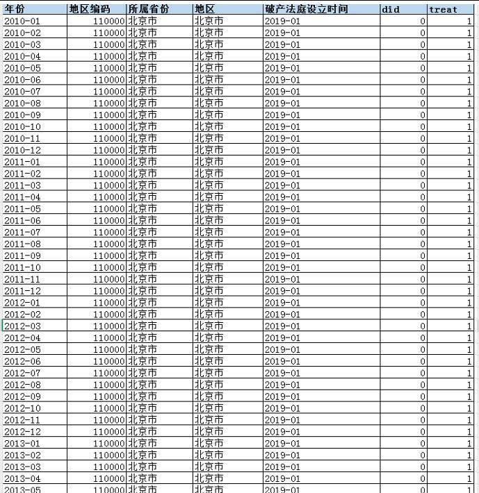 年份 地区编码 地区 所属省份 破产法庭设立时间 did treat