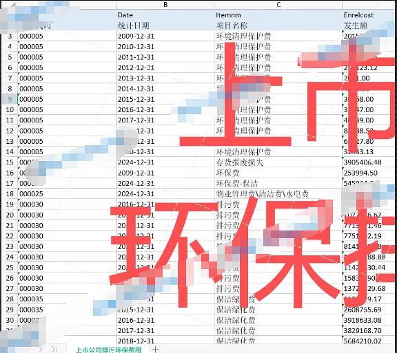 2️⃣上市公司排污环保费用 2009-2024 股票代码、统计日期、项目名称、发生额