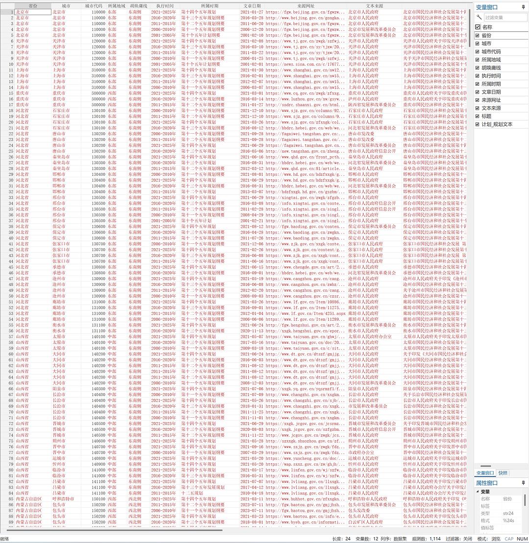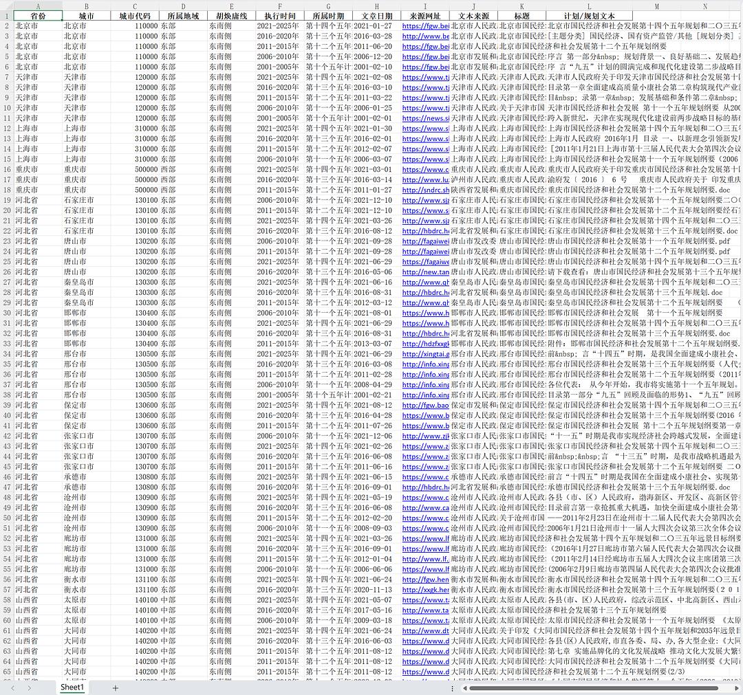 团队整理了中国290多个地级以上城市的“五年规划”文本。将原始文本整理成了面板数据,并保留原始TXT文件,跨度为第十个五年计划至第十四个五年规划