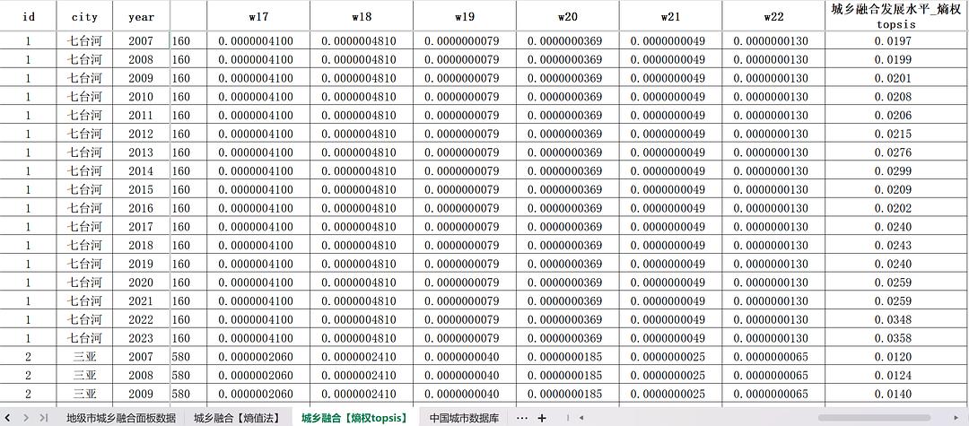 城乡融合发展水平计算方法二-熵权-TOPSIS