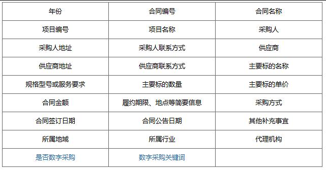 政府数字采购筛选:以数字化相关的关键词为核心筛选依据,若政府采购合同文本中 “合同名称”“主要标的名称”“规格型号或服务要求” 三项关键信息中任意一项包含数字化相关关键词,则将该采购项目界定为政府数字采购合同