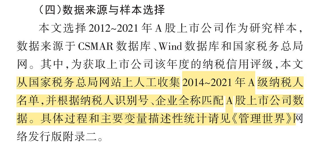 参考《管理世界》王敏(2024)、《经济研究》李林木(2020)等做法,团队整理了上市公司A级纳税人名单及相关数据,包含企业名称、与上市公司关系、评价年度、纳税