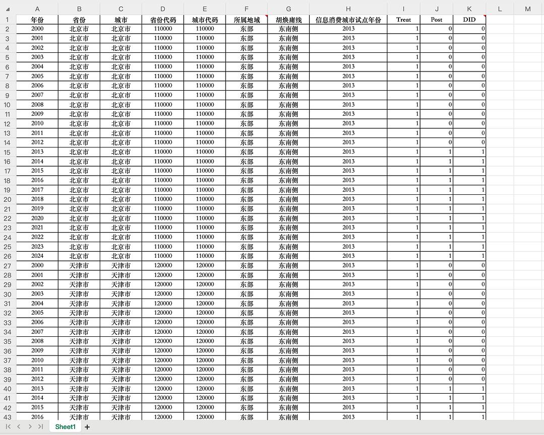 信息消费试点政策DID-Excel格式