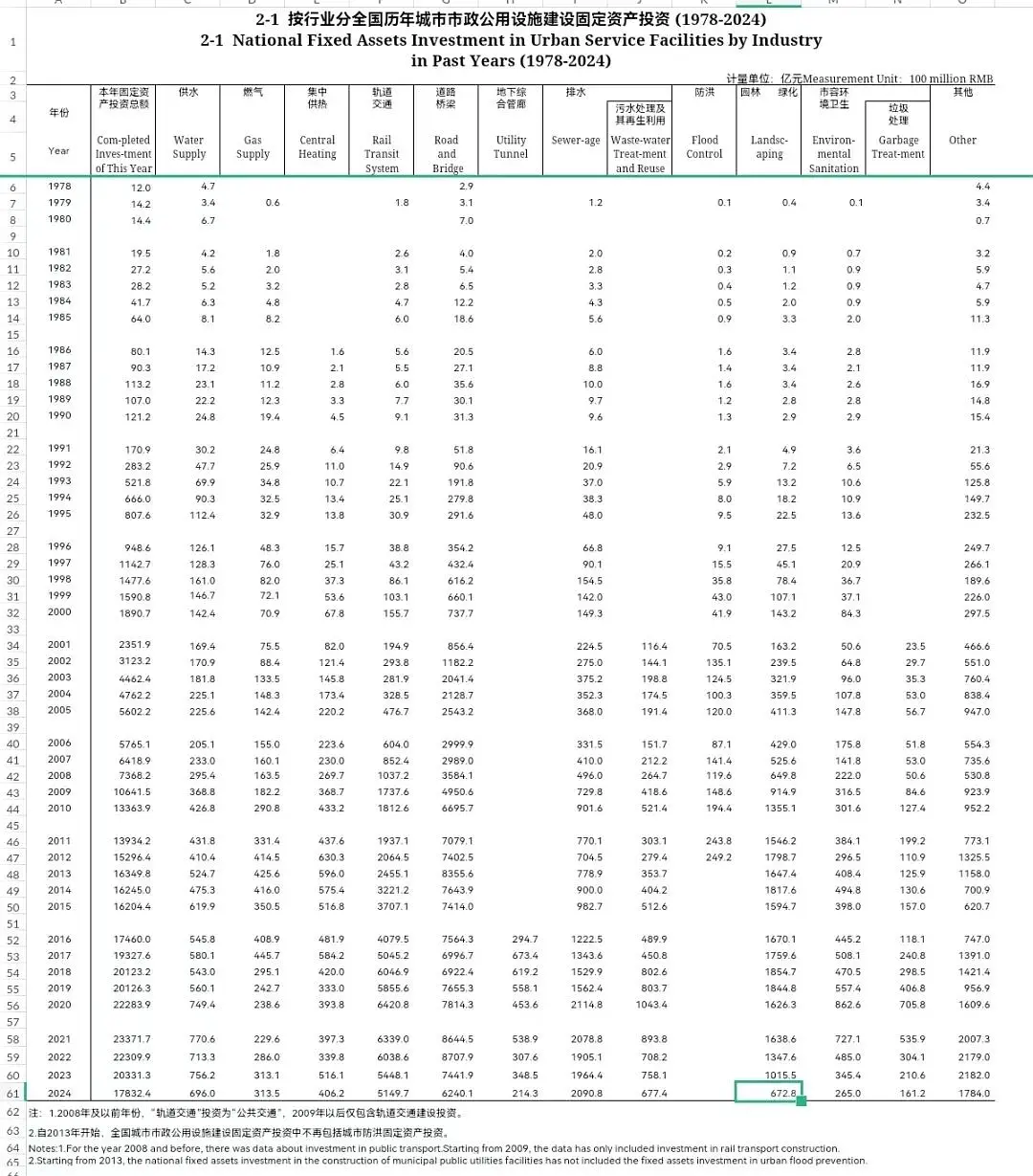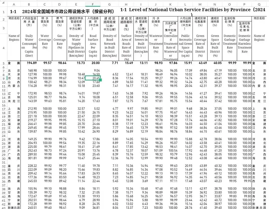 今日数据:《中国城乡建设统计年鉴-2006-2024》